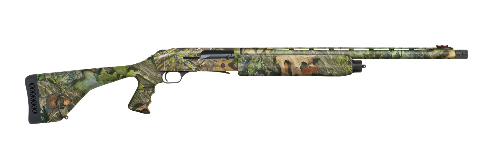The Mossberg 935 Magnum turkey features a synthetic Mossy Oak Obsession stock with a pistol grip, along with an Obsession finish on the barrel. This 12 gauge turkey hunter comes with one vent rib overbored barrel, and is equipped with a 3.5 inch chamber, this gun is great for any turkey hunter.